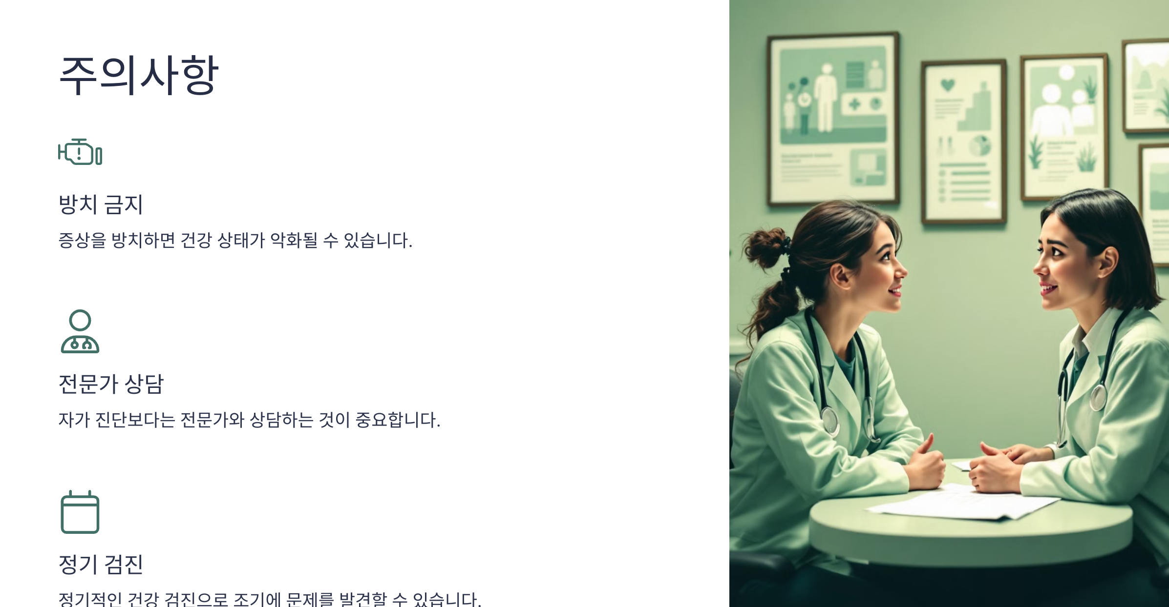 적절한 진단 없이 이러한 증상을 방치할 경우 건강 상태가 더욱 악화될 수 있으므로, 관련된 모든 가능성을 고려하여 전문가와 상의하는 것이 중요합니다.