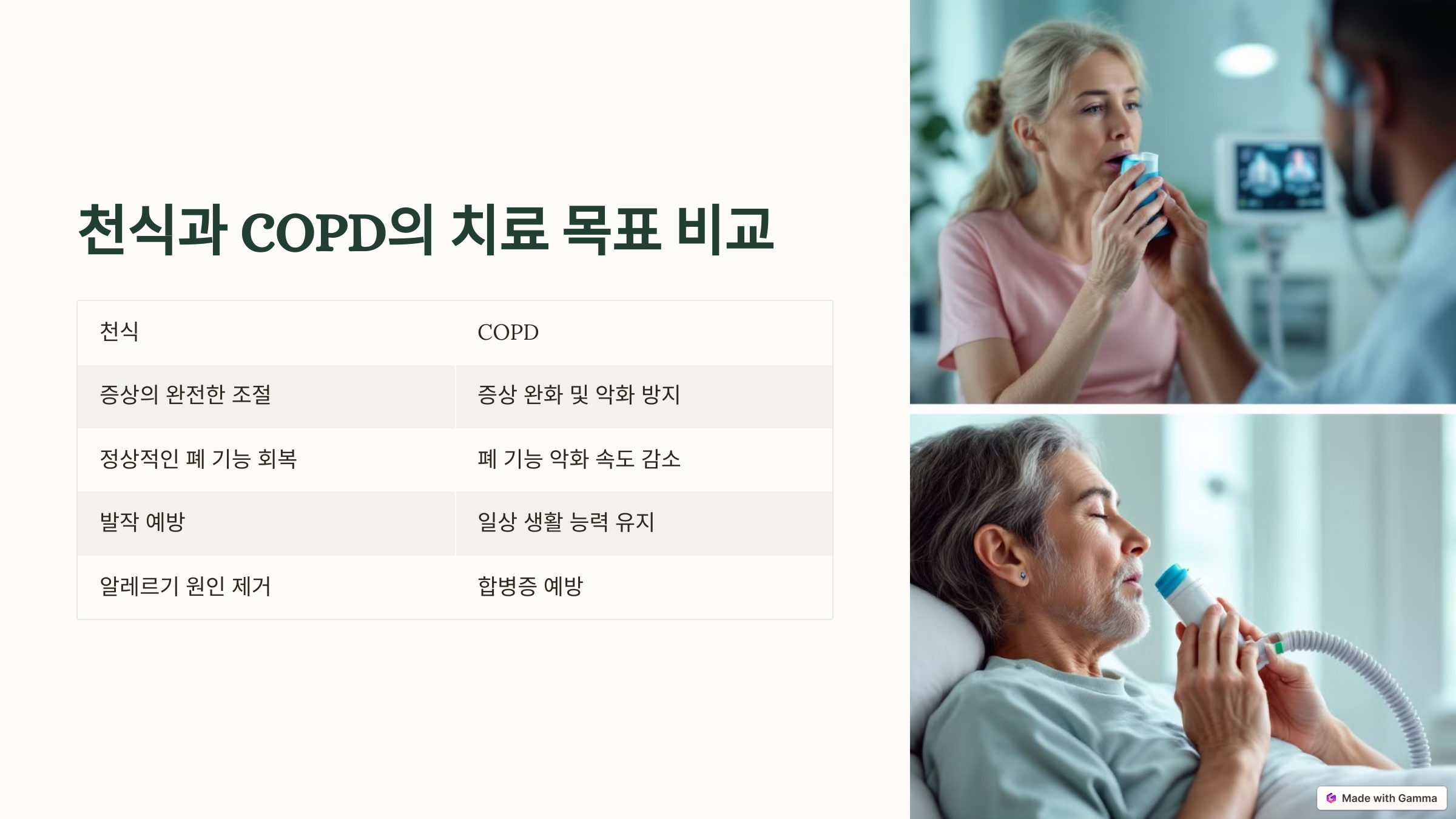 - 천식과 COPD의 주요 증상 비교