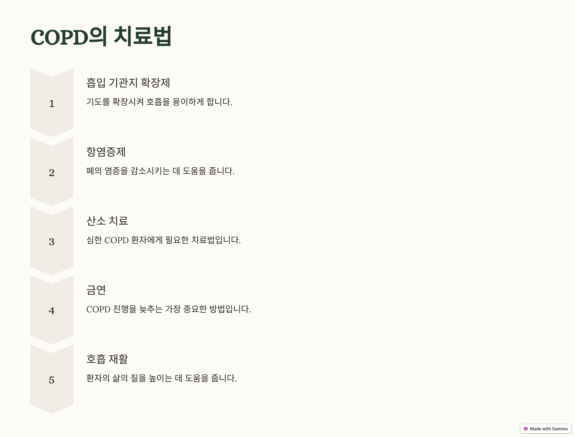 A3: 가장 중요한 것은 금연입니다. 금연은 COPD의 진행을 늦추고 폐 기능 악화를 방지하는 데 필수적입니다.