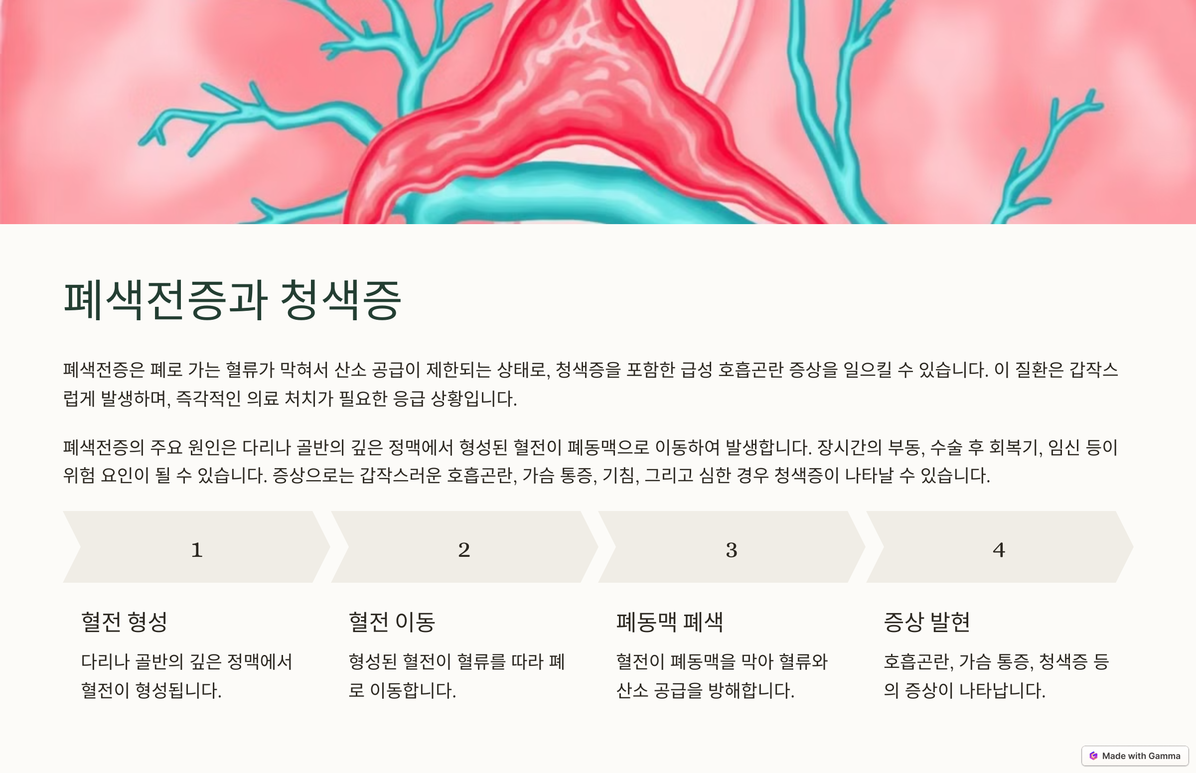 또한 폐색전증은 폐로 가는 혈류가 막혀서 산소 공급이 제한되는 상태로, 청색증을 포함한 급성 호흡곤란 증상을 일으킬 수 있습니다. 폐렴, 폐섬유화 등과 같은 폐 질환도 산소 전달에 장애를 일으켜 청색증을 발생시킬 수 있습니다. 이처럼 청색증은 다양한 질환과 연관되어 있으므로 원인을 정확히 파악하고 그에 따른 적절한 치료가 필요합니다.