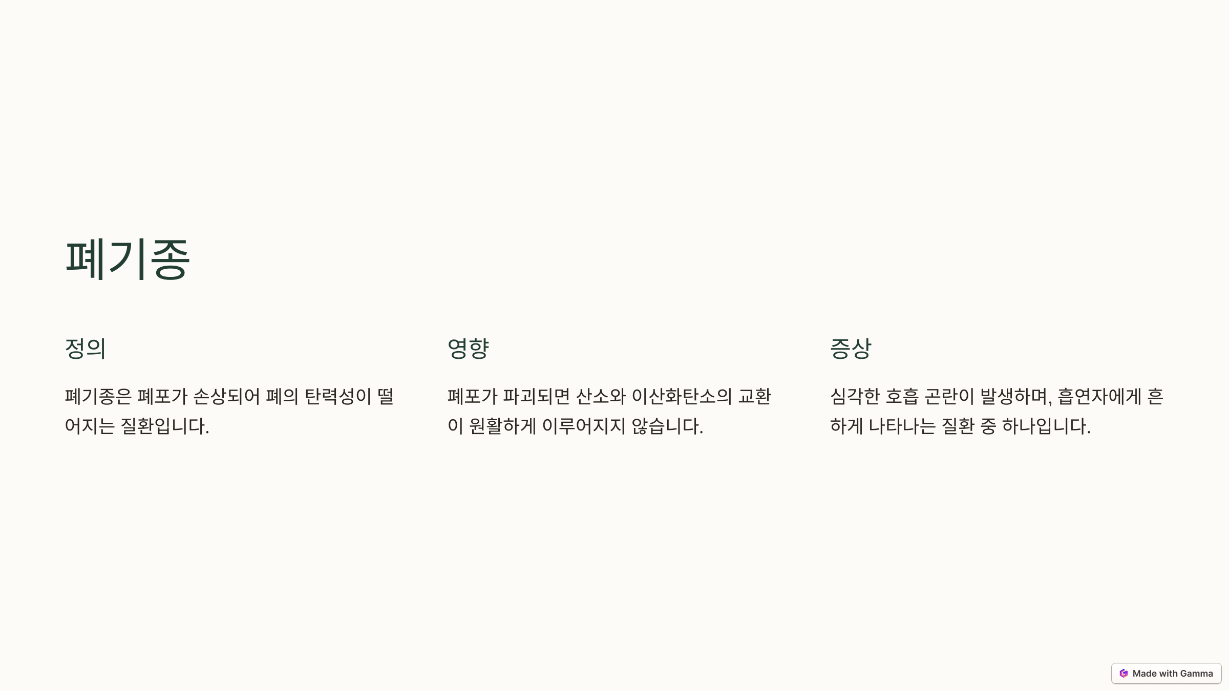 폐기종은 폐포가 손상되어 폐의 탄력성이 떨어지는 질환으로, 폐포가 파괴되면 산소와 이산화탄소의 교환이 원활하게 이루어지지 않습니다. 이로 인해 심각한 호흡 곤란이 발생하며, 흡연자에게 흔하게 나타나는 질환 중 하나입니다. 또한 폐암은 흡연과 밀접하게 연관되어 있으며, 흡연자에게서 비흡연자보다 발병 확률이 현저히 높습니다. 폐암은 초기 발견이 어렵고, 치료가 복잡하기 때문에 예방이 가장 중요한 질환입니다.