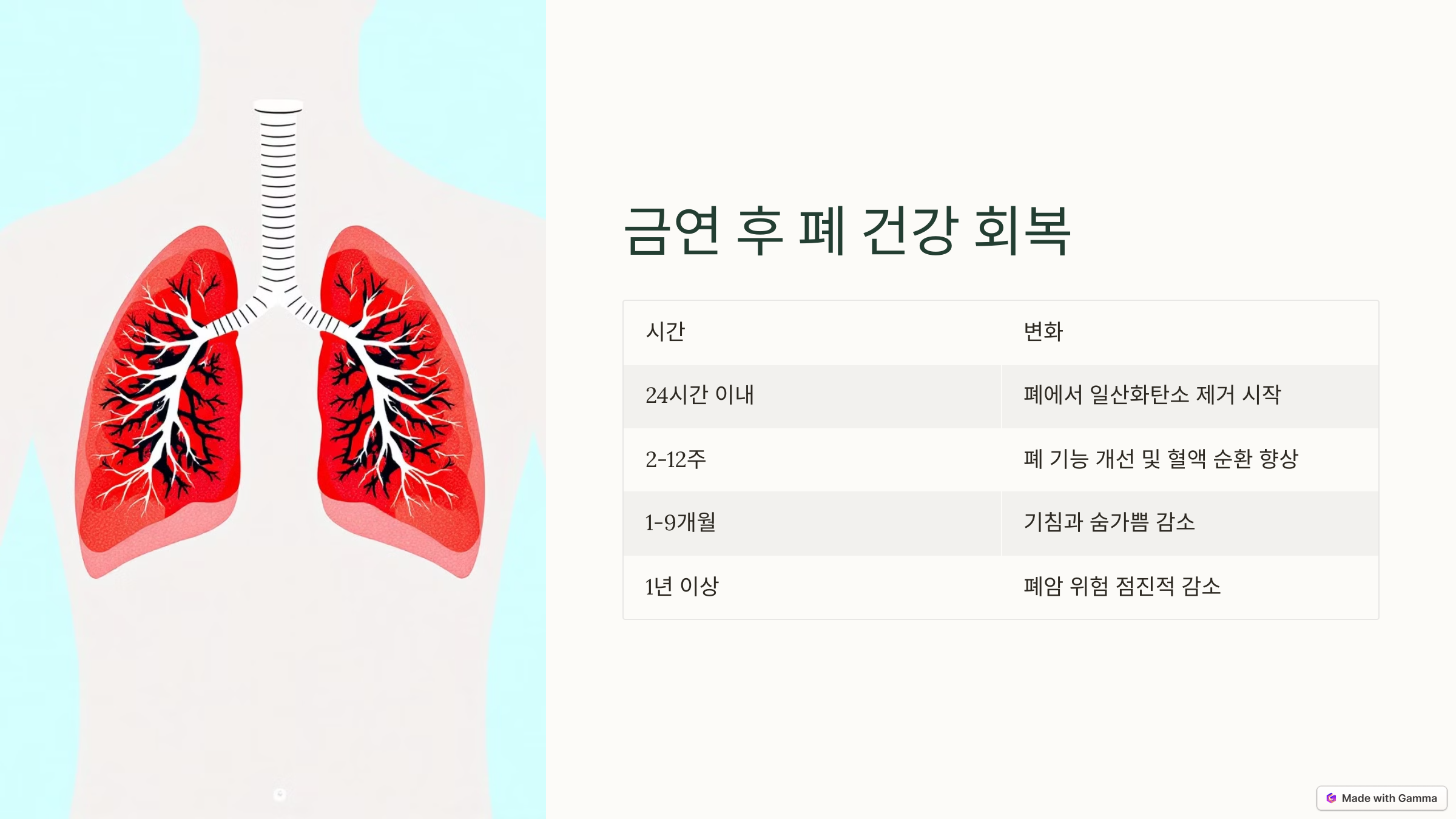 A2: 금연을 하면 시간이 지나면서 폐의 일부 기능이 회복될 수 있습니다. 특히, 염증이 줄어들고 폐의 자정 능력이 회복됩니다.